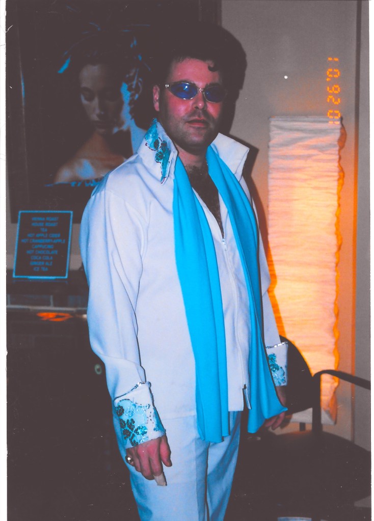 Miguel is a huge fan of Elvis Presley, his favourite performer! Here’s Miguel dressed up as The King, all set for a costume party.