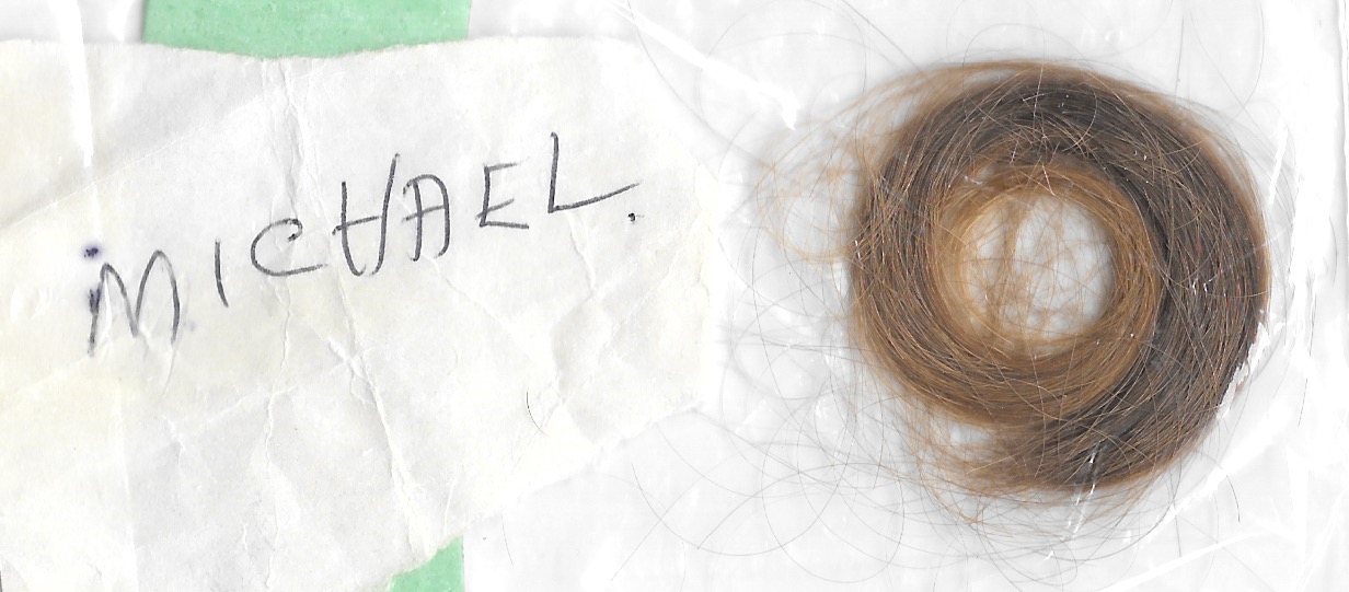 A lock of Miguel’s hair from his first haircut, ca. 1971
