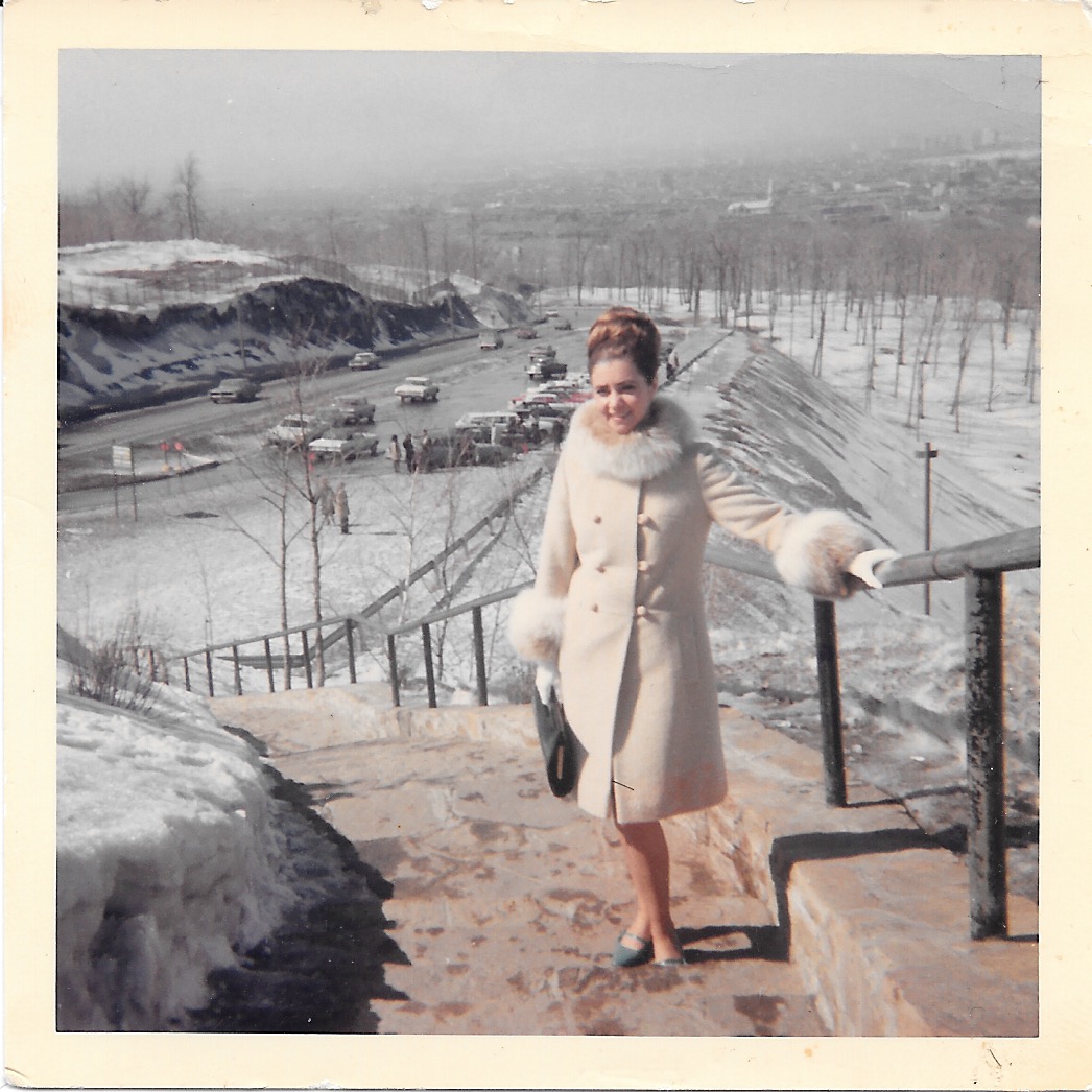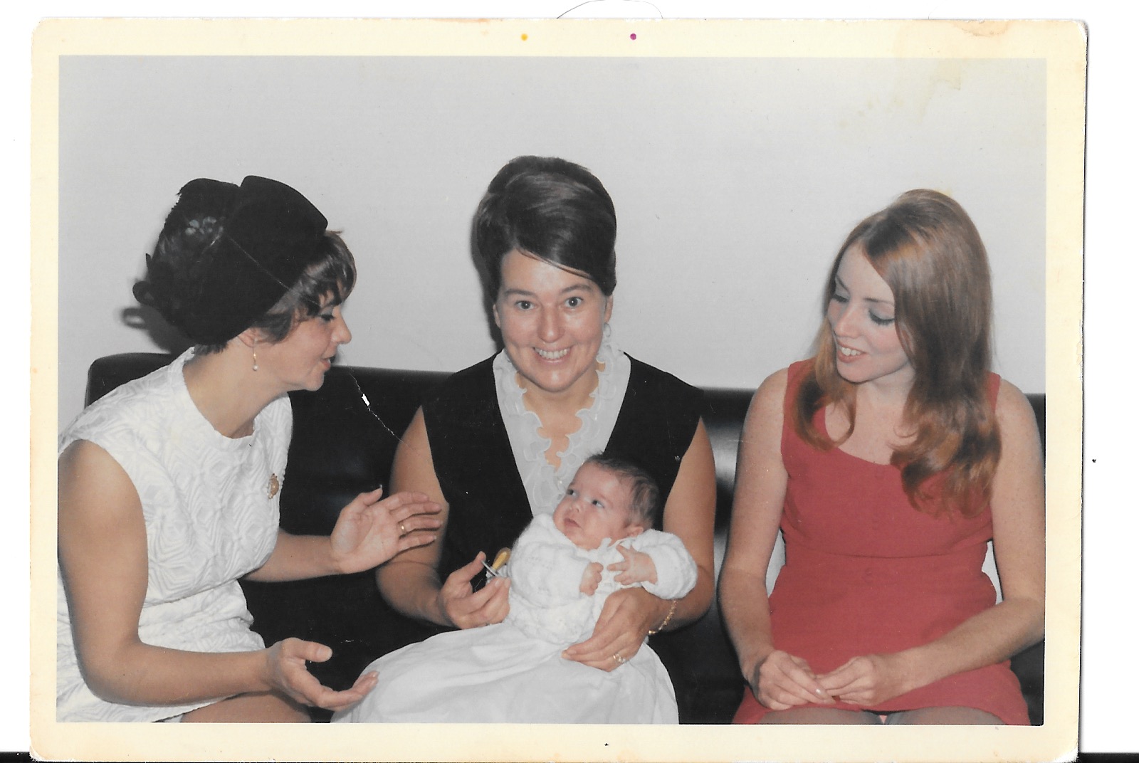 Grace (Graziela) shows off the infant Miguel to friends, 1970